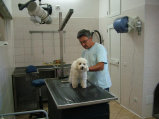 Da noi il proprietario puņ rimanere vicino al suo amico, durante il bagno o quando viene toelettato.